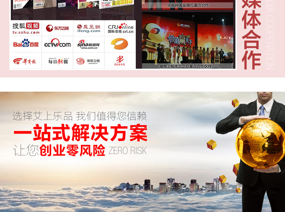 艾上乐品深知只有合作商盈利公司才能长远发展.公司不着眼短期利益,郑重承诺前期不给我们创业者设置任何门槛全力支持合作伙伴实现共赢!